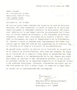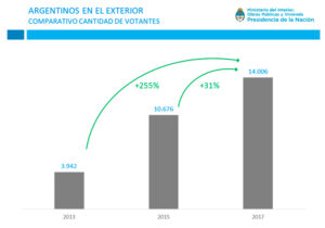 Este sector de la población, equivalente a más de una provincia, en la actualidad carece de políticas específicas. Por este motivo se desarrollarán líneas de acción que respondan a las demandas de los argentinos en el exterior en especial aquellas que refuercen los vínculos con el país.