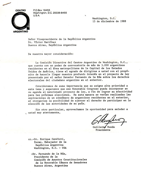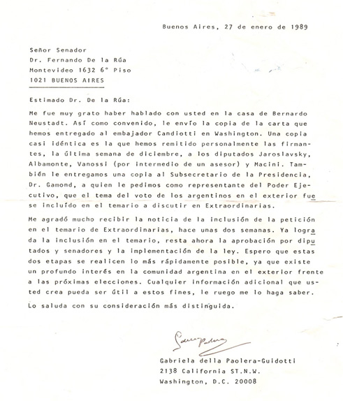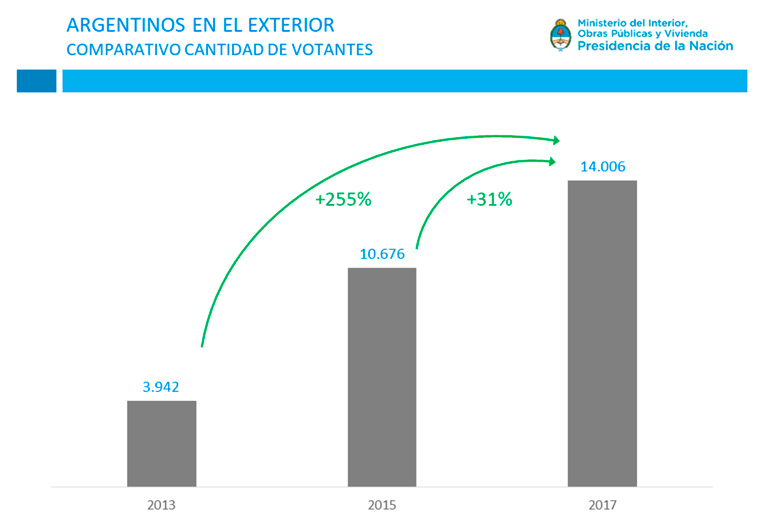 Este sector de la población, equivalente a más de una provincia, en la actualidad carece de políticas específicas. Por este motivo se desarrollarán líneas de acción que respondan a las demandas de los argentinos en el exterior en especial aquellas que refuercen los vínculos con el país.