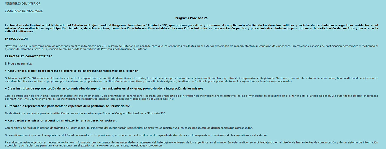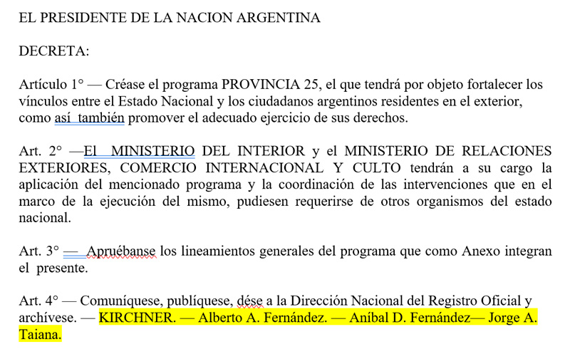El Programa Provincia 25 fue pensado como el instrumento que le permitirá al estado nacional fortalecer los vínculos con los argentinos en el exterior.